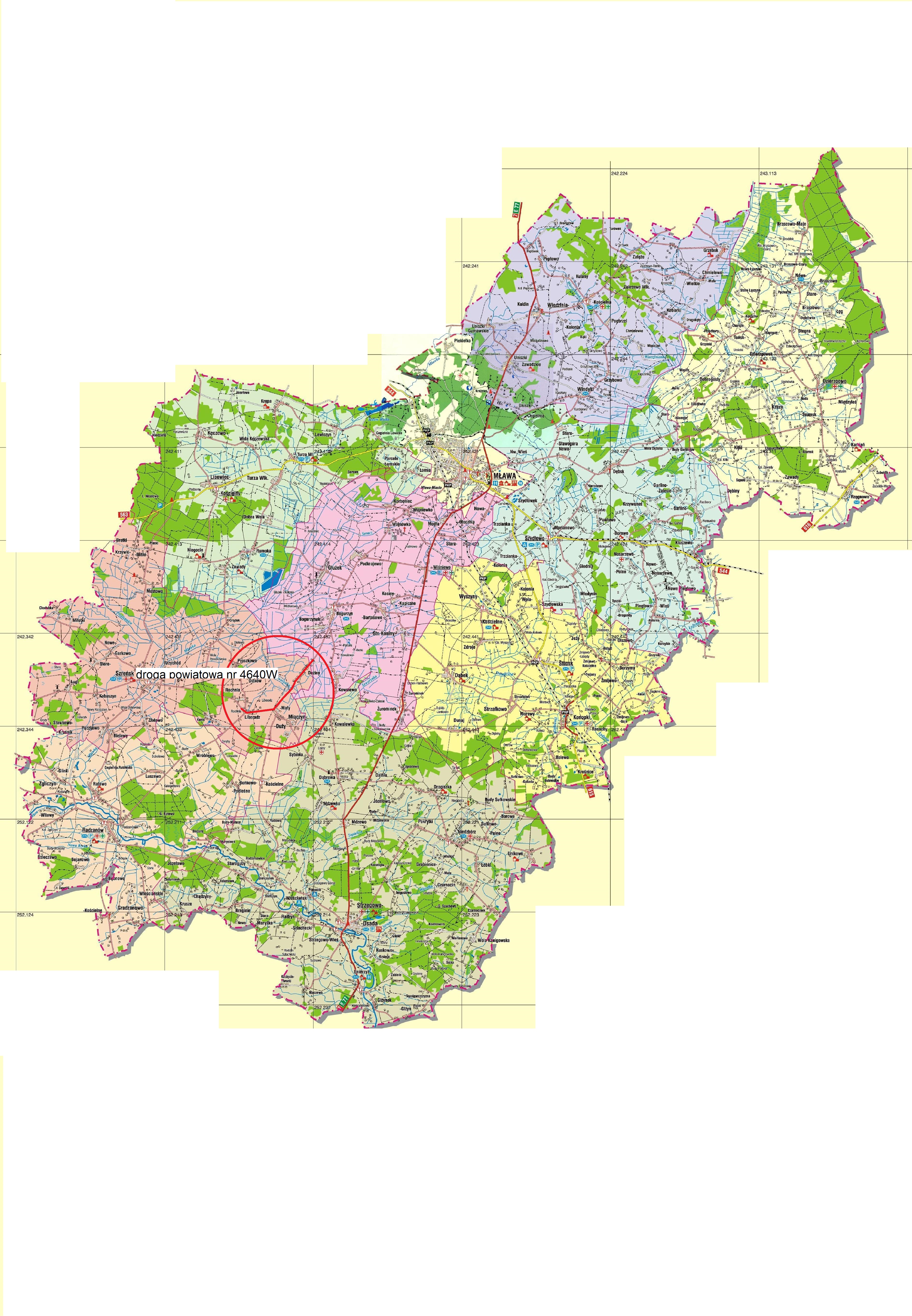 - Początek opracowania znajduje się na wysokości działki o nr ew. 90 ob. Rochnia, natomiast koniec opracowania znajduje się na wysokości działki o nr ew. 544 ob. Bogurzynek zgodnie z załącznikiem mapowym. Zakres przebudowywanych skrzyżowań z drogami powiatowymi, gminnymi zależeć będzie od przyjętych przez Projektanta rozwiązań dotyczących geometrii oraz ukształtowania wysokościowego.
